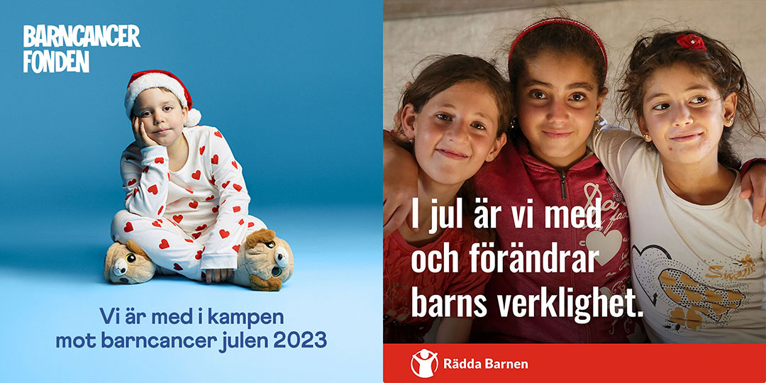 Till Rädda Barnen har vi skänkt en julgåva för att ge barn i konfliktområden mat, varma kläder och tryggare platser att växa upp på. Vi är även med och stödjer Barncancerfondens viktiga arbete för att alla barn som insjuknar i cancer ska överleva, och kunna få leva ett gott och långt liv.