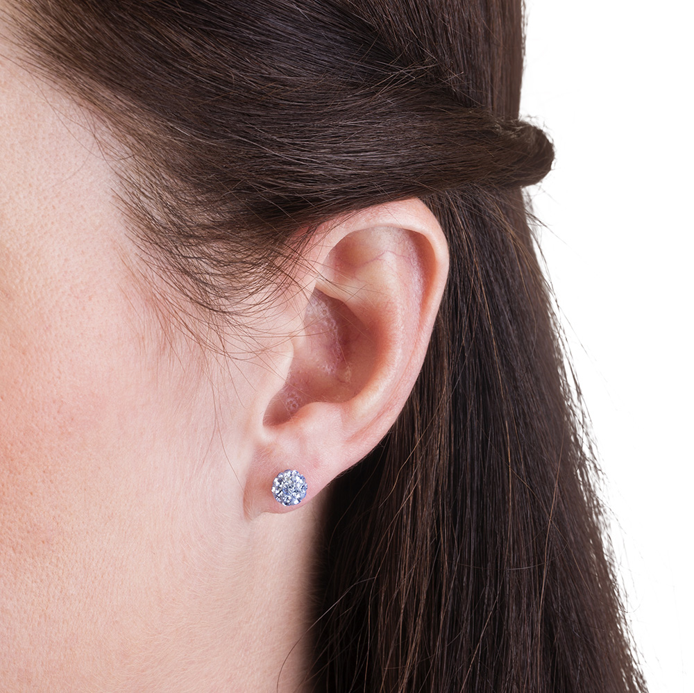 Øreringe udviklet i samråd med hudlæger, i ren medicinsk titan med krystalsten. Diameter 6 mm. Art nr 15‑1268‑06.