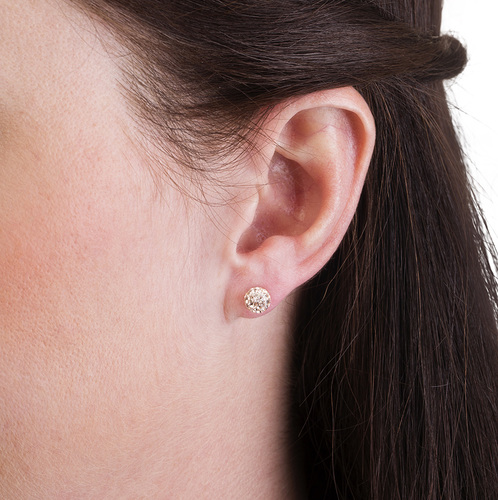 Øreringe udviklet i samråd med hudlæger, i ren medicinsk titan med krystalsten. Diameter 6 mm. Art nr 15‑1268‑75.