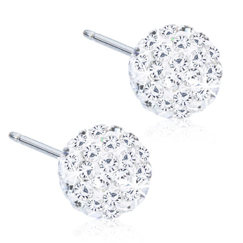 Øreringe udviklet i samråd med hudlæger, i ren medicinsk titan med krystalsten. Diameter 6 mm. Art nr 15‑1268‑01.