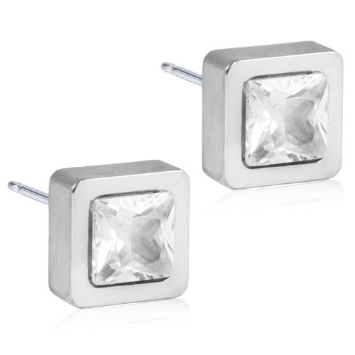 Øreringe udviklet i samråd med hudlæger, i ren medicinsk titan med en ufarvet cubic zirconia-sten. Diameter 8 mm. Art nr 15‑1220‑301.
