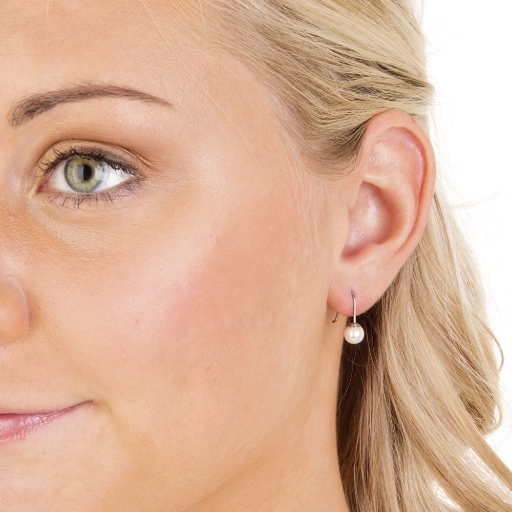 Øreringe udviklet i samråd med hudlæger, i ren medicinsk titan med Swarovski-perler. Diameter 6 mm. Art nr 15‑1280‑59.
