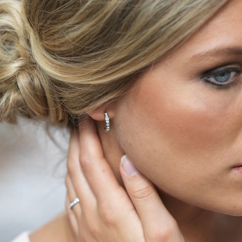 Øreringe udviklet i samråd med hudlæger, i ren medicinsk titan med Swarovski-krystaller. Størrelse 15 mm. Art nr 15‑12147‑01.