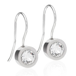 Øreringe udviklet i samråd med hudlæger, i ren medicinsk titan med Swarovski-krystaller. Diameter 8 mm. Art nr 15‑1238-1201.