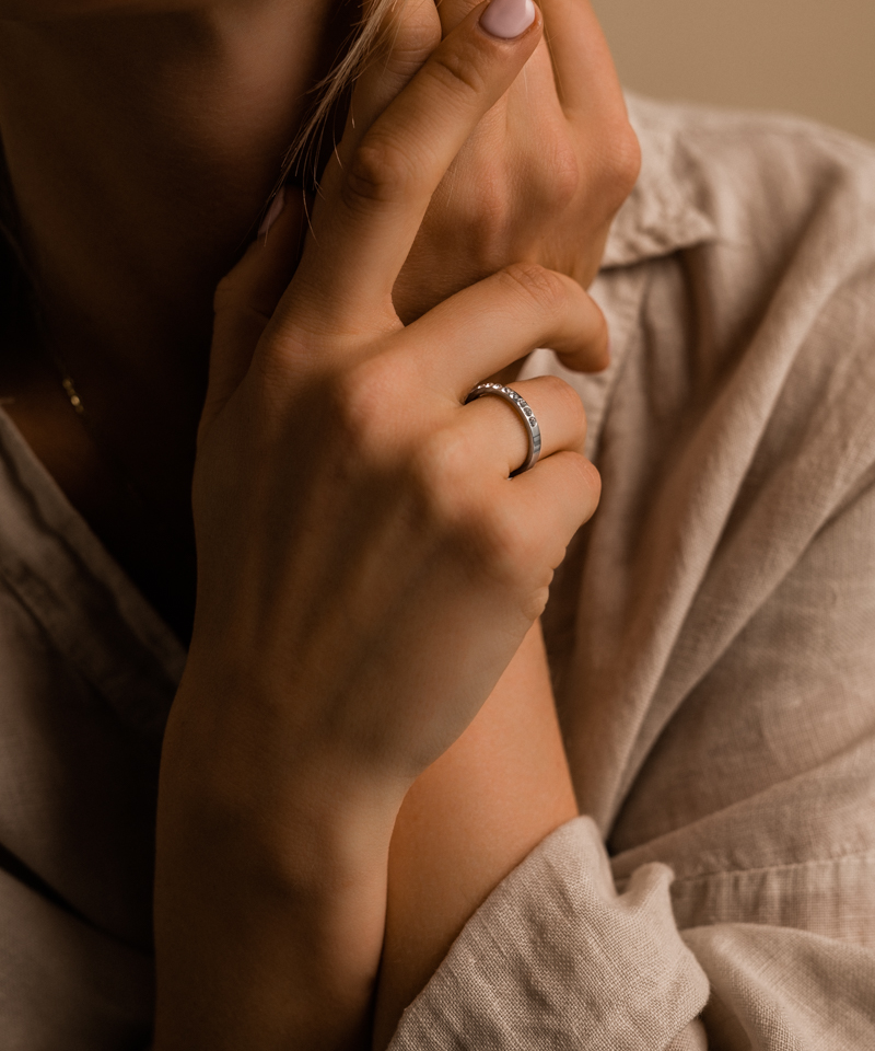 • En bred eller lige ringskinne kan gøre, at du går en ringstørrelse op. Det samme gælder, hvis du vil have flere ringe ved siden af hinanden.