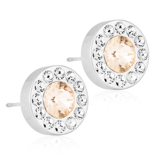 Earrings developed in consultation with skin specialists, in pure medical titanium with Swarovski crystals. The coating is only applied to the parts of the jewellery that don’t come into direct contact with your skin. Diameter 8 mm. Art. no. 15‑1465‑65.
