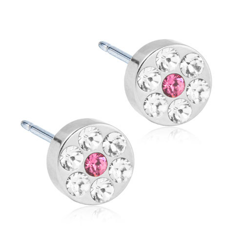 Earrings developed in consultation with skin specialists, in pure medical titanium with Swarovski crystals. Diameter 5 mm. Art. no. 15‑12166‑83.