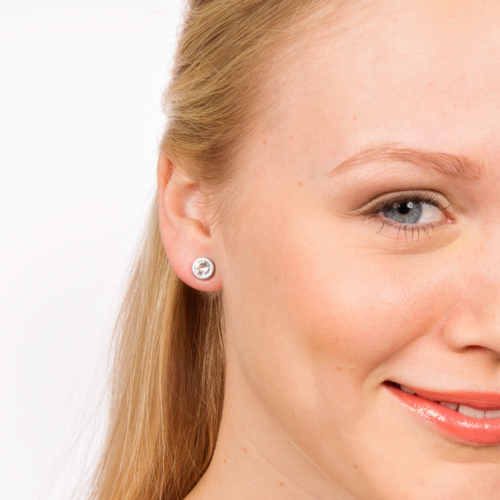 Earrings developed in consultation with skin specialists, in pure medical titanium with Swarovski crystals. The coating is only applied to the parts of the jewellery that don’t come into direct contact with your skin. Diameter 8 mm. Art. no. 15‑1412‑01.