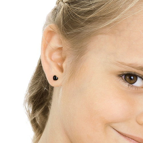 Earrings developed in consultation with skin specialists, in pure medical titanium. The coating is only applied to the parts of the jewellery that don’t come into direct contact with your skin. Diameter 5 mm. Art. no. 15‑1521‑00.