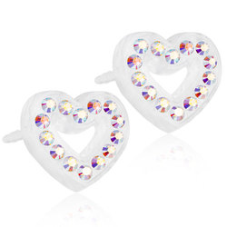 Earrings developed in consultation with skin specialists, in pure medical plastic with Swarovski crystals. Diameter 10 mm. Art. no. 15‑01121‑02.