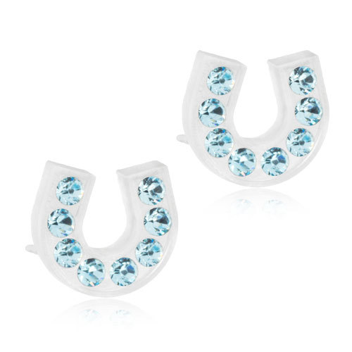 Earrings developed in consultation with skin specialists, in pure medical plastic with Swarovski crystals. Diameter 7 mm. Art. no. 15‑01127‑05.
