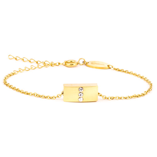 Armband utvecklat i samråd med hudläkare, med en guldfärgad, hudvänlig ytbeläggning ovanpå rostfritt stål av mycket hög kvalitet (316L). Vår unika ytbeläggning gör att armbandet blir upp till 300 gånger säkrare, jämfört med samma smycke utan beläggning. Därför passar våra hudvänliga smycken alla, även dig som har nickelallergi. Swarovski-kristaller. Justerbar längd; 14-19 cm. Art. nr. 32‑2364‑1401.