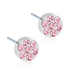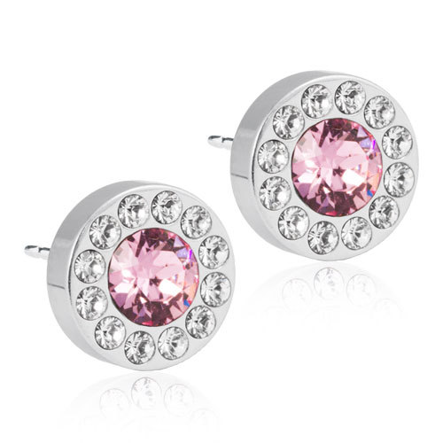 Örhängen utvecklade i samråd med hudläkare, i ren medicinsk titan med Swarovski-kristaller. Silverfärgad ytbeläggning som inte kommer i kontakt med huden. Diameter 8 mm. Art. nr. 15‑1465‑84.