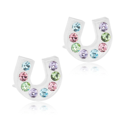 Örhängen utvecklade i samråd med hudläkare, i ren medicinsk plast med Swarovski-kristaller. Diameter 7 mm. Art. nr. 15‑01127‑98.