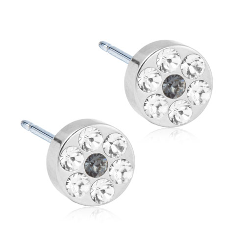 Örhängen utvecklade i samråd med hudläkare, i ren medicinsk titan med Swarovski-kristaller. Diameter 5 mm. Art. nr. 15‑12166‑62.