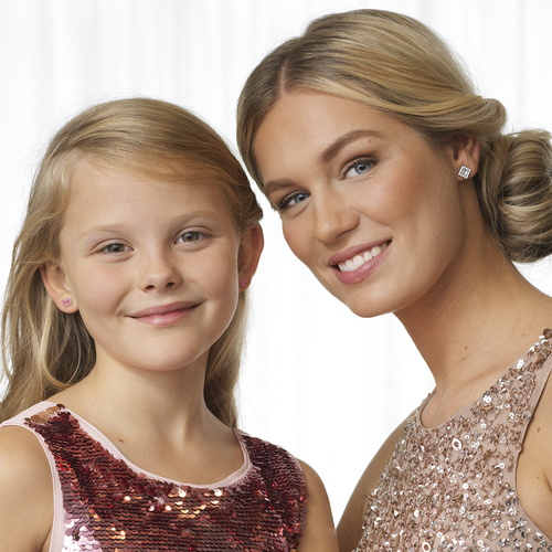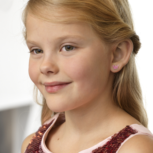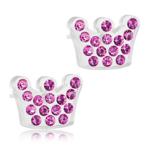 Örhängen utvecklade i samråd med hudläkare, i ren medicinsk plast med Swarovski-kristaller. Diameter 9 mm. Art. nr. 15‑01125‑03.