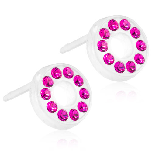 Örhängen utvecklade i samråd med hudläkare, i ren medicinsk plast med Swarovski-kristaller. Diameter 8 mm. Art. nr. 15‑01191‑09. Obs! Bruten förpackning/Clean pack kan av hygieniska skäl inte returneras.
