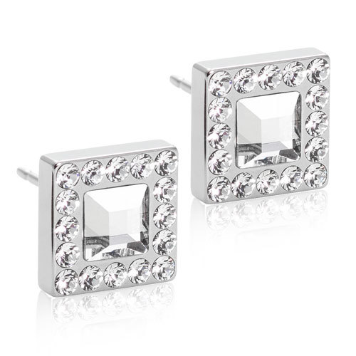 Örhängen utvecklade i samråd med hudläkare, i ren medicinsk titan med Swarovski-kristaller. Diameter 11 mm. Art. nr. 15‑12192‑01.