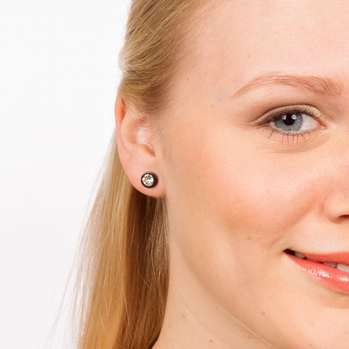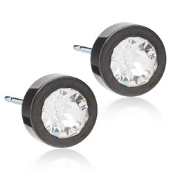 Örhängen utvecklade i samråd med hudläkare, i ren medicinsk titan med Swarovski-kristaller. Svart ytbeläggning som inte kommer i kontakt med huden. Diameter 8 mm. Art. nr. 15‑1512‑01.