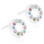 Örhängen utvecklade i samråd med hudläkare, i ren medicinsk plast med Swarovski-kristaller. Diameter 4/5 mm. Art. nr. 15‑0103‑1498.