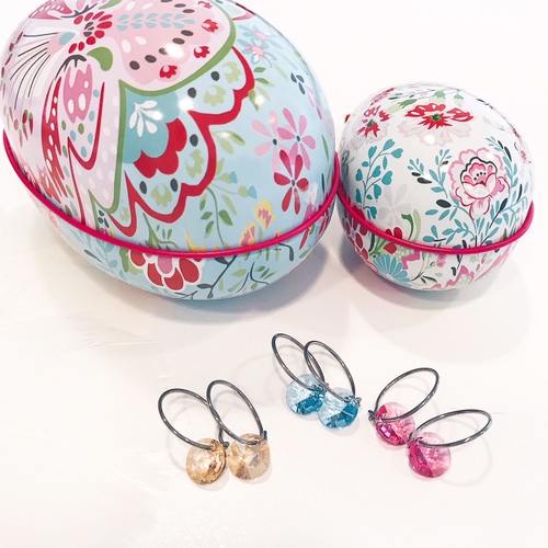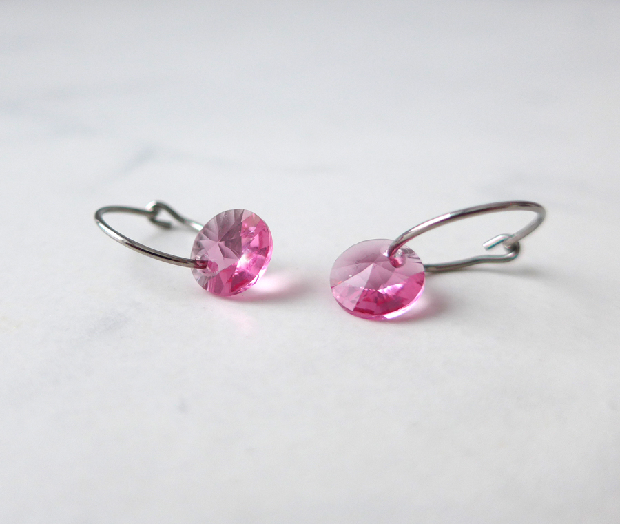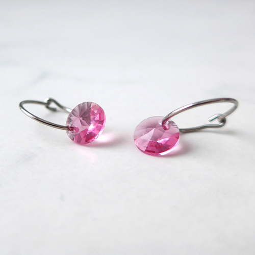 Örhängen utvecklade i samråd med hudläkare, i ren medicinsk titan med Swarovski-kristall, 8 mm. Ring 14 mm. Art. nr. 15‑1248‑03.