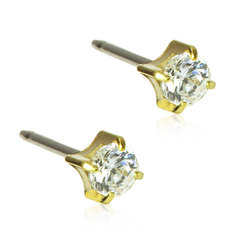 Örhängen utvecklade i samråd med hudläkare, i ren medicinsk titan med ofärgade cubic zirconia-stenar. Guldfärgad ytbeläggning som inte kommer i kontakt med huden. Diameter 4 mm. Art. nr. 15‑1303‑30.