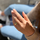 Ring utvecklad i samråd med hudläkare, i medicinsk titan med Swarovski-kristaller. Hudvänlig, guldfärgad ytbeläggning. Ringbredd 3 mm, höjd 1,5 mm. Art. nr. 31‑131146‑1601.