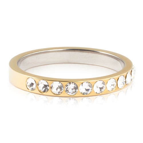Ring utvecklad i samråd med hudläkare, i medicinsk titan med Swarovski-kristaller. Hudvänlig, guldfärgad ytbeläggning. Ringbredd 3 mm, höjd 1,5 mm. Art. nr. 31‑131146‑1701. Obs! Bruten förpackning/Clean pack kan av hygieniska skäl inte returneras.