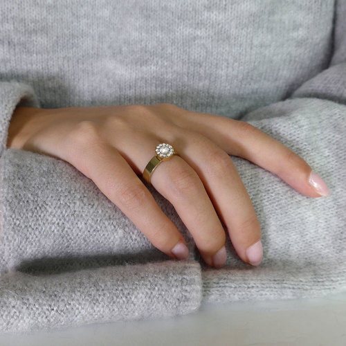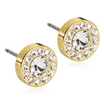 Ring utvecklad i samråd med hudläkare, i medicinsk titan med Swarovski-kristaller. Hudvänlig, guldfärgad ytbeläggning. Ringbredd 4 mm, höjd 1,5 mm. Fattning höjd 2 mm, diameter 8 mm. Art. nr. 31‑13265‑1701.