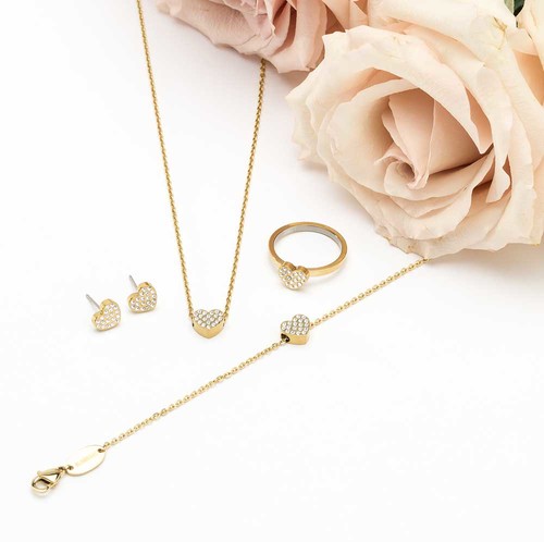 Ring utvecklad i samråd med hudläkare, i medicinsk titan med Swarovski-kristaller. Hudvänlig, guldfärgad ytbeläggning. Ringbredd 2 mm, höjd 1,5 mm. Fattning höjd 2 mm, diameter 8 mm. Art. nr. 31‑130172‑1601.