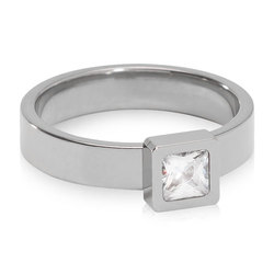 Ring utvecklad i samråd med hudläkare, i medicinsk titan med ofärgad cubic zirconia-sten. Ringbredd 4 mm, höjd 1,5 mm. Fattning höjd 2,5 mm, diameter 8 mm. Art. nr. 31‑12220‑17301. Obs! Bruten förpackning/Clean pack kan av hygieniska skäl inte returneras.