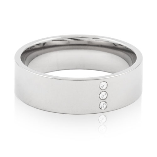 Ring utvecklad i samråd med hudläkare, i medicinsk titan med Swarovski-kristaller. Ringbredd 6 mm, höjd 1,5 mm. Art. nr. 31‑12364‑1801.