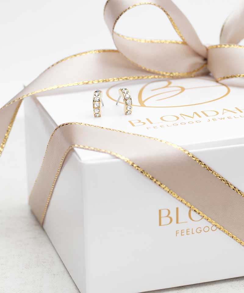 Stilrena, hudvänliga örhängen i ren medicinsk titan med guldfärgad ytbeläggning som ger smycket den perfekta guldkänslan du är ute efter. Lätta, bekväma och så snälla mot huden att du kan bära dem varje dag. Utvecklade i samråd med hudläkare och passar därför alla, även dig som har nickelallergi eller känslig hud. Blomdahl är kvalitetsmycken tillverkade i Sverige under fullständig kontroll och dokumentation.