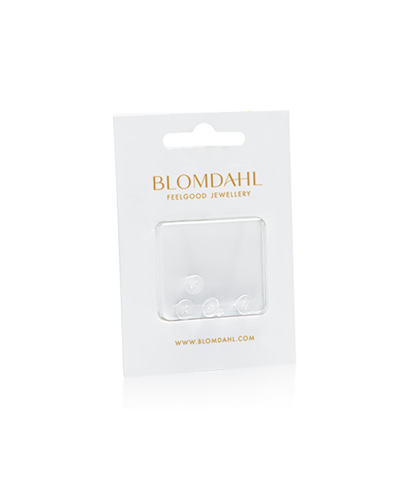 Hudvänliga lås för örhängen i medicinsk plast. 4 st/förpackning.