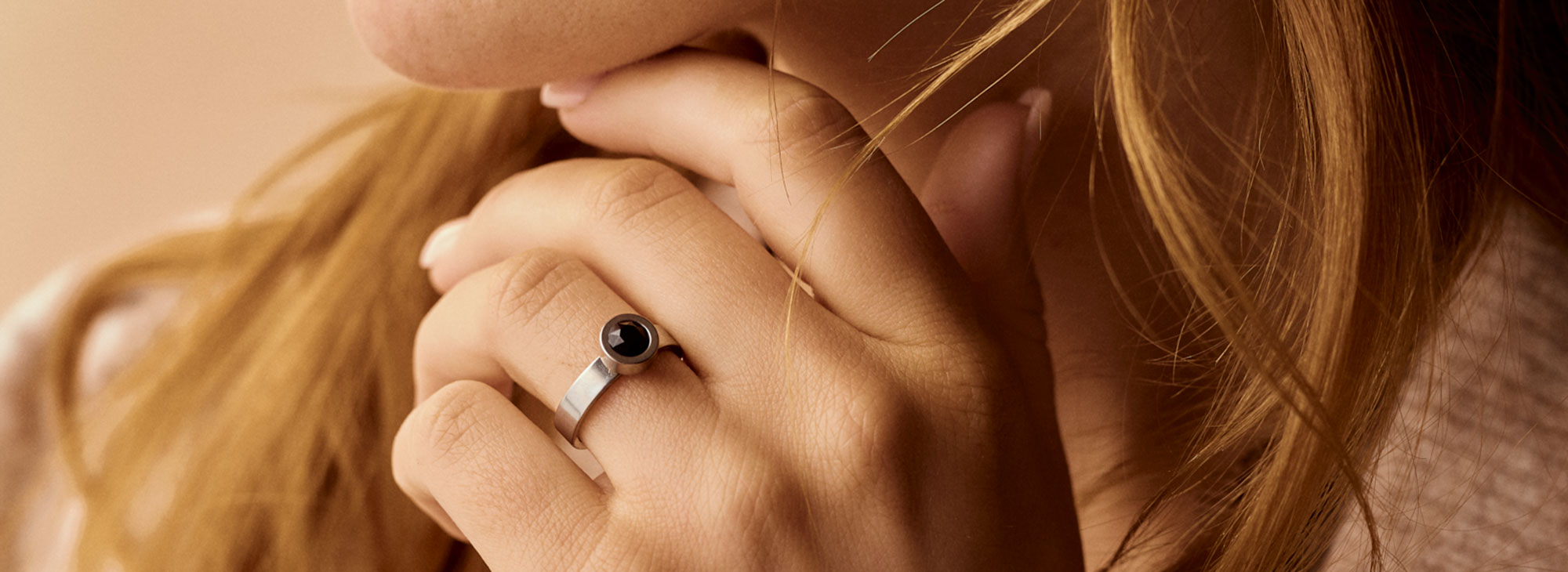 Vi har en tydlig designfilosofi som vi håller oss till, nämligen att smyckena alltid ska vara snälla mot huden – det vill säga att de måste vara möjliga att tillverka i de material vi använder. Materialen är ju utvalda för att garantera hudvänligheten och även göra smyckena sköna att bära.